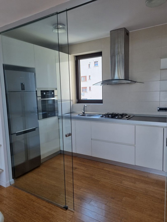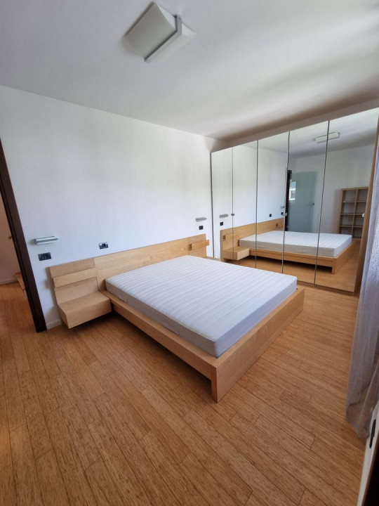 With 110 sqm usable area, the apartment offers plenty of space for the day area and for the night area. It is efficiently divided, has high ceillings, lot of light, large living room and beautiful terrace with green and open view.
