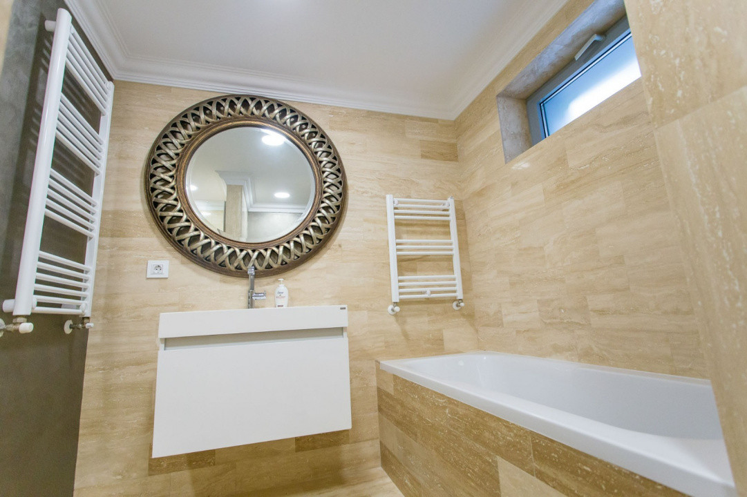 Finisajele proprietatii au fost atent alese, apartamentul este dotat cu sistem inovator de control al temperaturii, incalzire prin pardoseala, radiatoare statice decorative in dormitoare, ventiloconvectoare, aer conditionat Mitsubishi cu control separat pentru fiecare camera, parchet triplustratificat, tamplarie Schuco.
