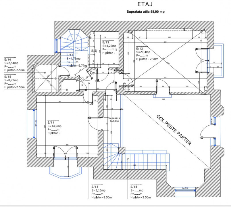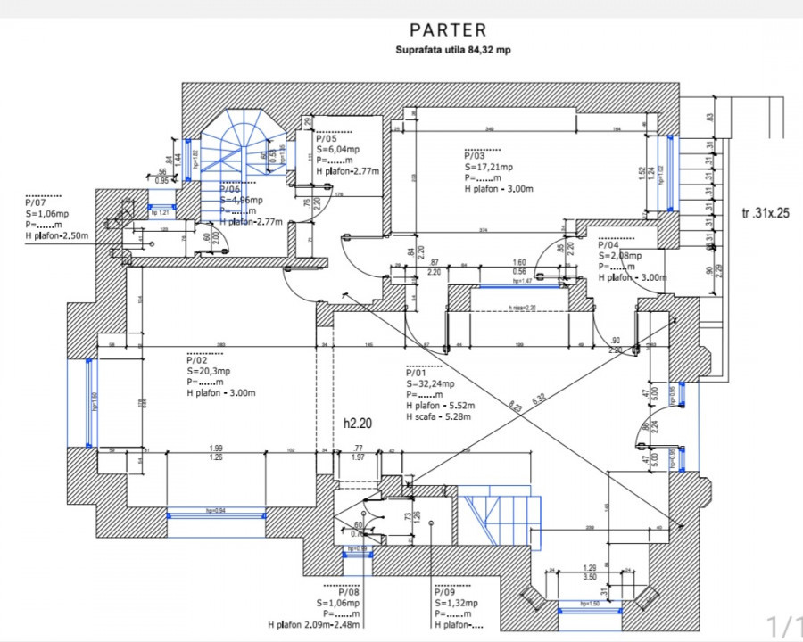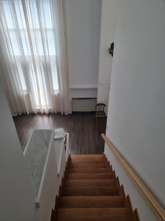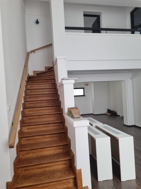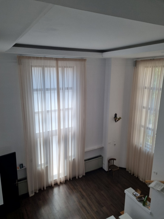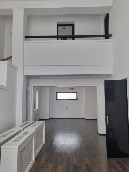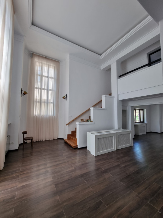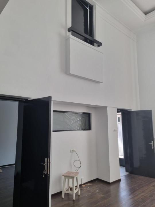 - parterul, avand o suprafata utila de 84.32 mp, este compus dintr-un living de 32 mp, cu tavan inalt de 5.5 m, doua camere de 17 mp respectiv 20 mp, o baie si un grup sanitar