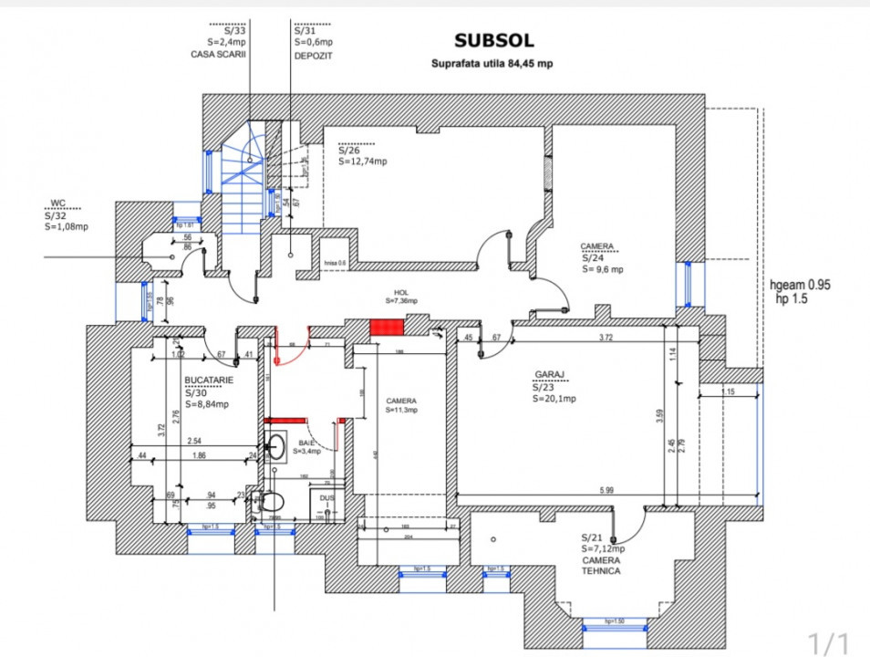- demisolul, cu o suprafata utila de 84.45 mp, este compus din garaj ( 20mp), camera tehnica ( 7 mp), bucatarie (8.84 mp), doua camere de depozitare si un grup sanitar
