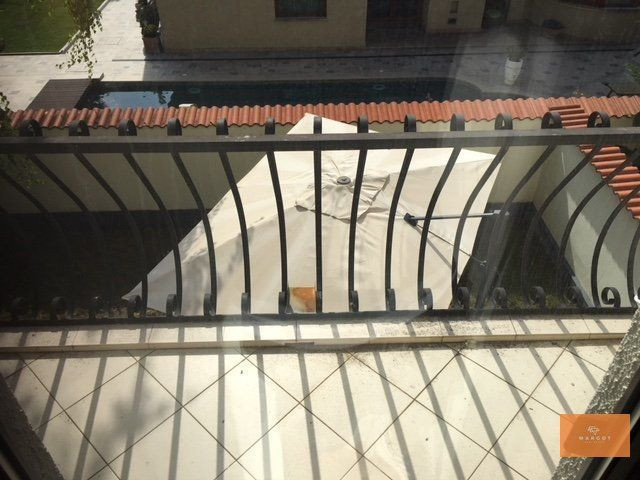 On the first floor we have two bedrooms with balcony, sharing one bathroom, a small dressing, lavatory room, and the master bedroom with its own bathroom and balcony, looking towards the garden.