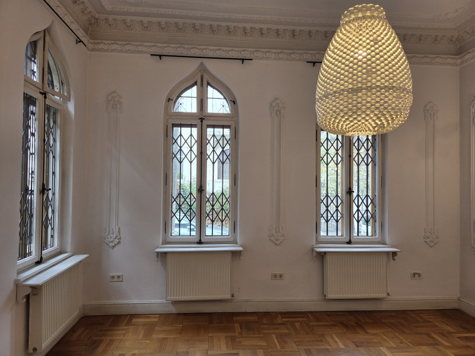 Interiorul se remarcă prin încăperi înalte, luminoase, păstrând detaliile arhitecturale originale, de la tâmplăria autentică până la parchetul din lemn masiv și finisajele specifice interbelicului. Fiecare nivel oferă spații bine proporționate, versatile, potrivite pentru birouri reprezentative, cabinet de avocatură, firmă de consultanță sau showroom boutique.